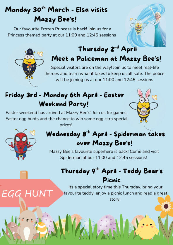 Easter Events at Mazzy Beeβs Soft Play